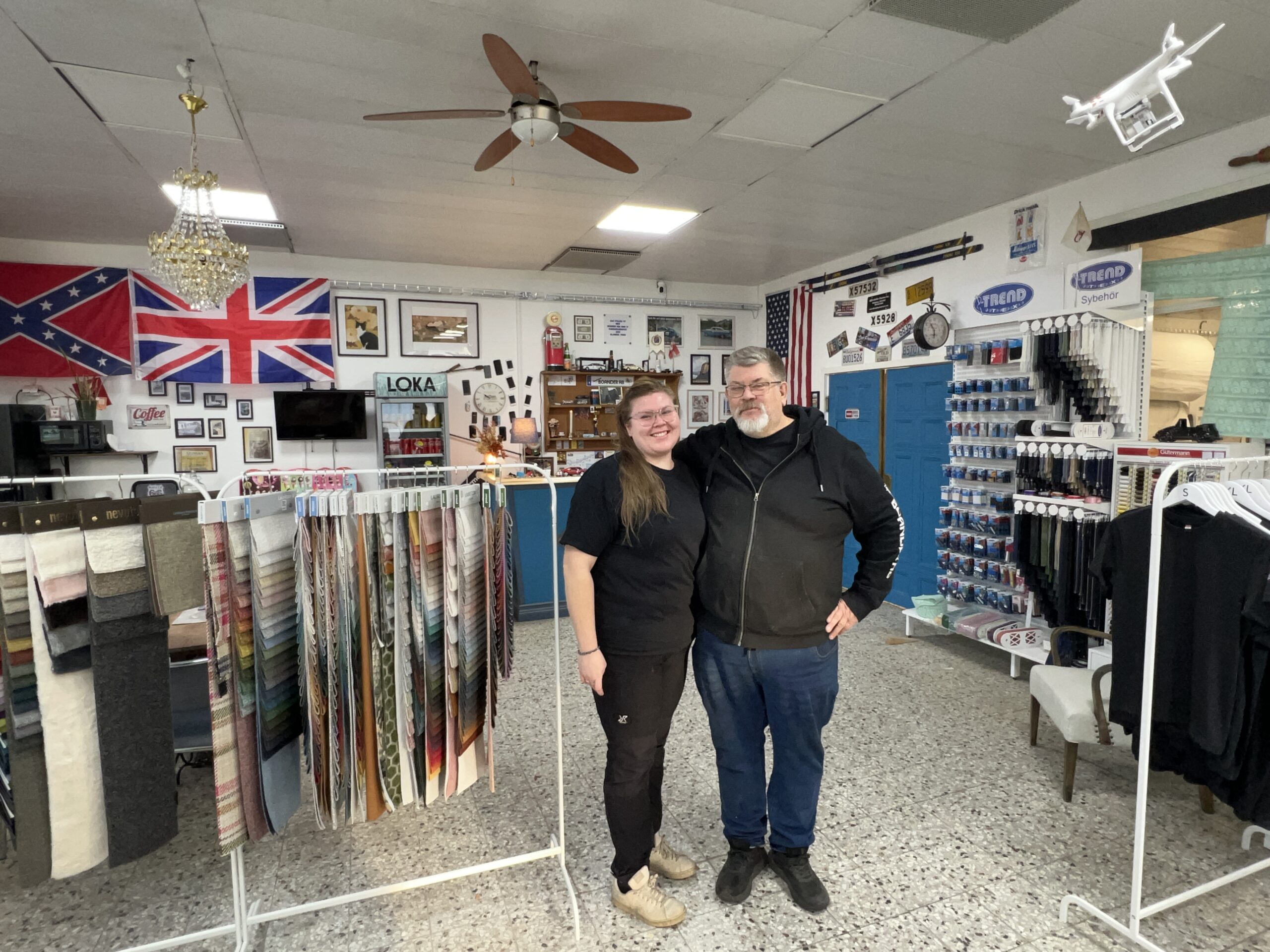 I vår butik erbjuder vi ett brett sortiment av produkter såsom gångmattor, impregneringsmedel, dragkedjor, sytillbehör, rengöringsmedel för bilar, tavlor samt vårt eget sortiment av tygprover från leverantörer som AMA i Norrland, Swaffer, Sydtextil, Scanaprem, Newotex, Top n Trim Shop, OC Oskarsson, Elmo, Trendtex och Östersjö Kompaniet.